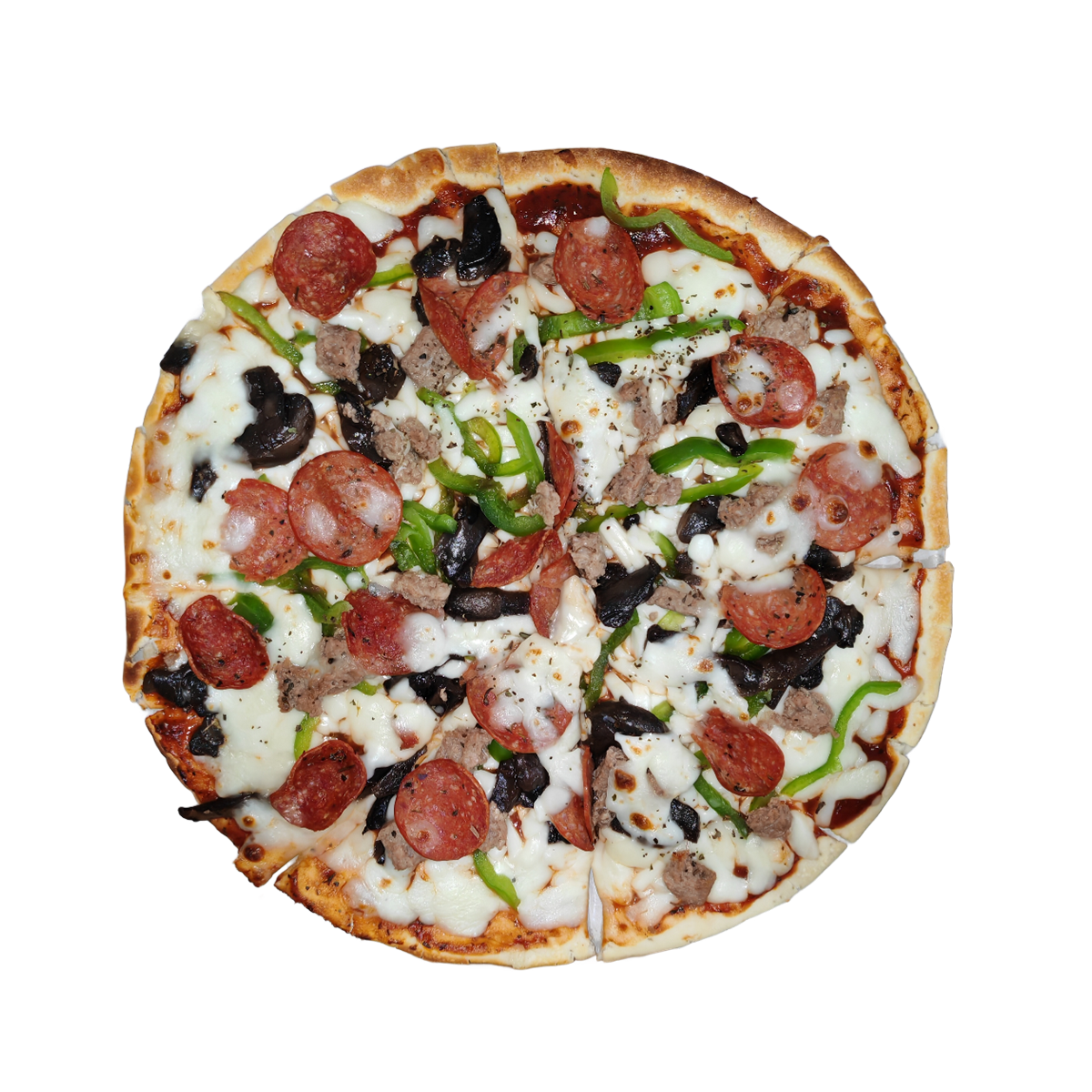 Bredz special dough, our special secret pizza sauce, sliced Kuwaiti veal, pepperoni, green bell pepper, onion, mozzarella cheese.